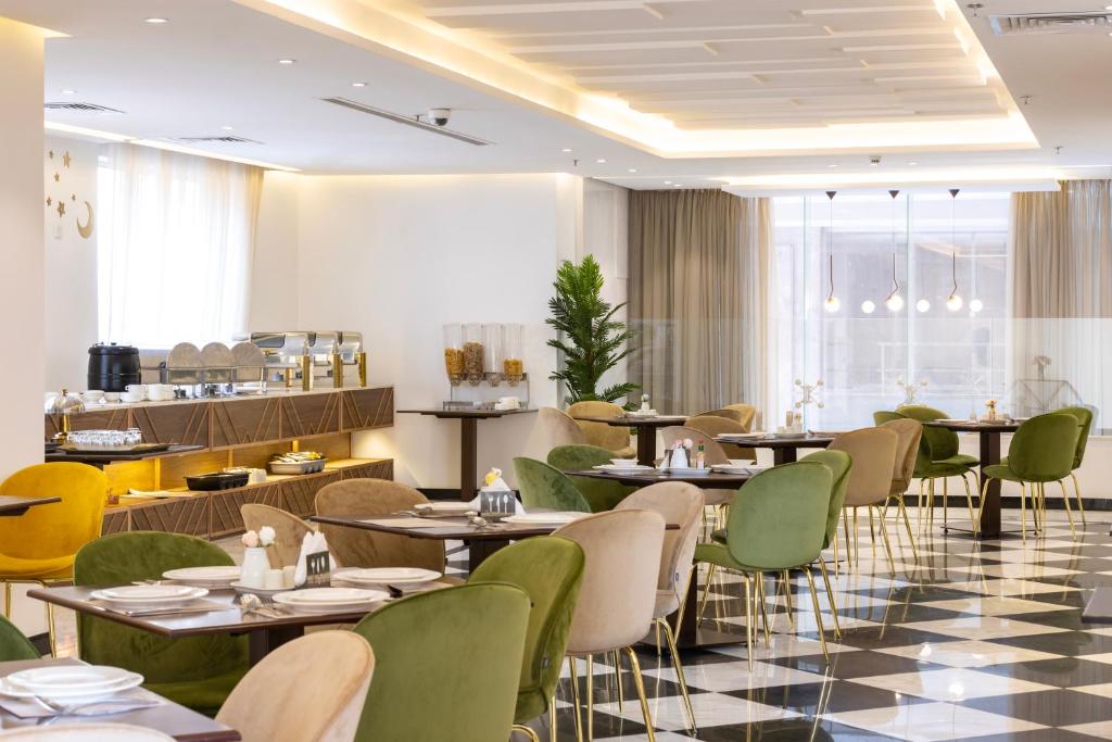- الطعام والشراب: يحتوي الفندق على مطعم رئيسي يقدم بوفيهات متنوعة (خاصة في رمضان للإفطار والسحور)، ومقهى لتناول المشروبات، بالإضافة إلى توفر مطعم خاص لتقديم وجبات محددة.
